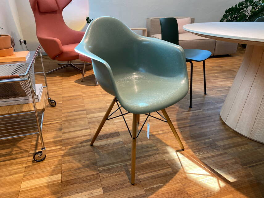 - Sitzschale Fiberglass Farbe sea foam green, Gestell Esche honigfarben